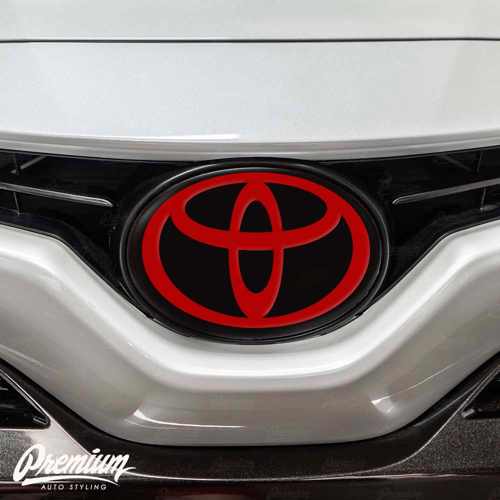 Toyota has a great looking front end as is, but what if you could make it better. While making it your own. This is our Stealth emblem overlay, if you're looking for an easy way to change the look of your emblems without all the hassle of taking off the badge itself. These unique Vinyl overlays have been pre-cut for easy DIY installation and are made with quality automotive grade vinyl, not your typical calendar film found in most decal stickers. These overlays have air release technology that allow for easy install. This is the same material we use to wrap entire vehicles. It is a two layer decal. Simple Peel and Stick Process saves you time and money. Unlike most ebay or amazon vendors, Premium Auto Styling vinyl overlays are designed and produced here in the USA in our own facility. We design and test fit all products to ensure fitment guaranteeing you the best results . Basically, if they don’t work on our cars, they’re not going to end up on yours. If you are looking for an inexpensive styling modification, or you just want to change up the factory look, it's a great idea to checkout this vinyl overlay.