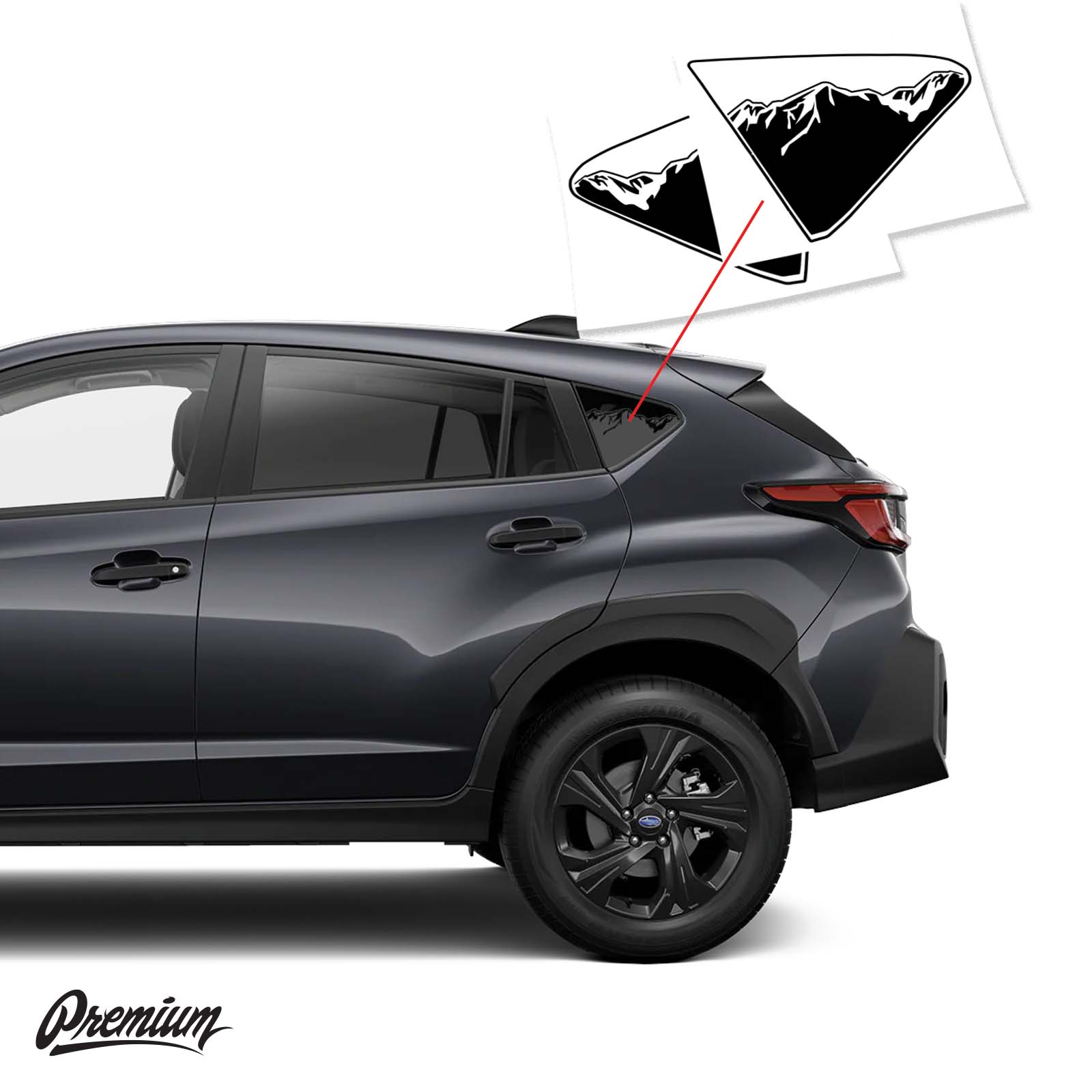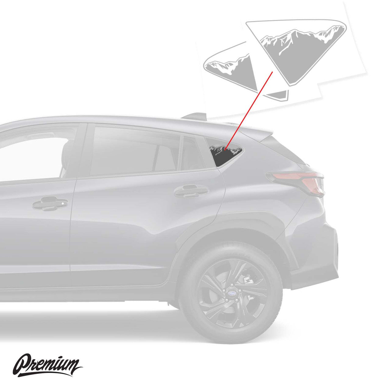 Show off this Full Mtn. Range decals that is pre-cut to the rear quarter window while the decal itself is reverse cut! Making it so the sun shines through only the logo itself. This Rear Quarter Window Decal set takes your 2024+ Subaru Crosstrek un-used quarter window and turns it into a great focal point with this awesome subaru inspired decal. Even better, when sun shines through it, it casts a pretty cool shadow inside the car. It comes in a satin black OR satin grey finish that adds just the right amount of "cool factor" without being too flashy or in-your-face. Unlike most ebay or amazon vendors, Premium Auto Styling vinyl overlays are designed and produced here in the USA in our own facility. We design and test fit all products to ensure fitment guaranteeing you the best results . Basically, if they don’t work on our cars, they’re not going to end up on yours.