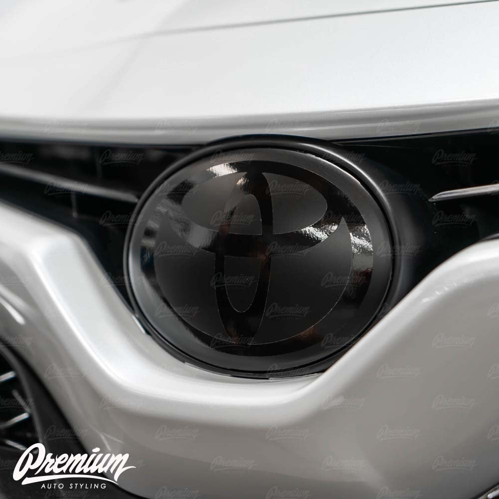 Toyota has a great looking front end as is, but what if you could make it better. While making it your own. This is our Stealth emblem overlay, if you're looking for an easy way to change the look of your emblems without all the hassle of taking off the badge itself. These unique Vinyl overlays have been pre-cut for easy DIY installation and are made with quality automotive grade vinyl, not your typical calendar film found in most decal stickers. These overlays have air release technology that allow for easy install. This is the same material we use to wrap entire vehicles. It is a two layer decal. Simple Peel and Stick Process saves you time and money. Unlike most ebay or amazon vendors, Premium Auto Styling vinyl overlays are designed and produced here in the USA in our own facility. We design and test fit all products to ensure fitment guaranteeing you the best results . Basically, if they don’t work on our cars, they’re not going to end up on yours. If you are looking for an inexpensive styling modification, or you just want to change up the factory look, it's a great idea to checkout this vinyl overlay.