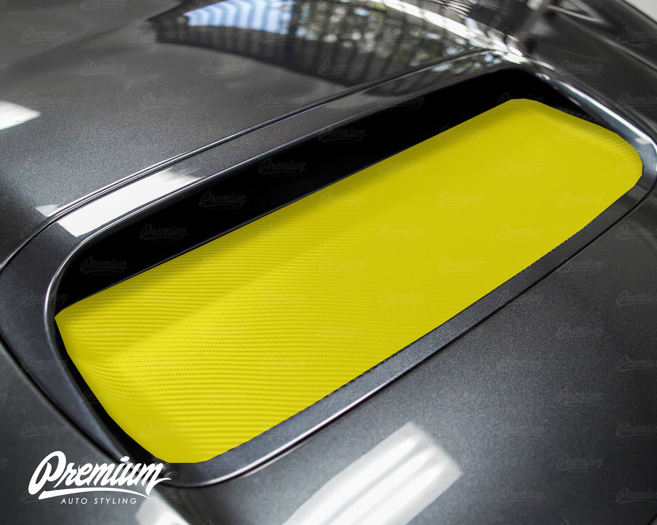 Add a touch of carbon fiber, gloss black, or satin black to your hood scoop with this pre-cut vinyl overlay. Easy peal and stick install!