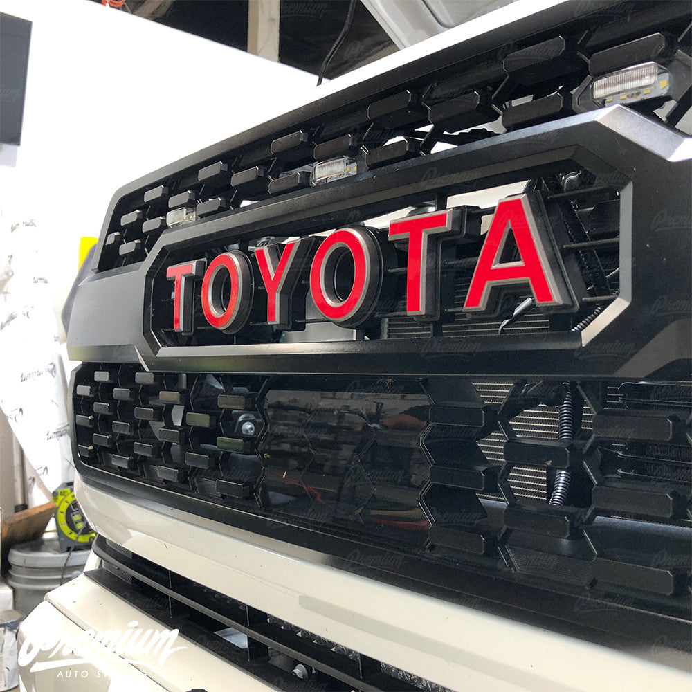 2016-2023 Toyota Tacoma - Premium Auto Styling brings you yet another inexpensive way to customize your Tacoma, thanks to our grille lettering overlays. Premium Auto Styling's products are available in many different colors for your truck. Our overlays are constructed from high quality premium cast vinyl and is designed to last several years. As always with all Premium vinyls they are designed and produced right here in house and then tested out on our very own cars first to ensure a perfect fit every time.