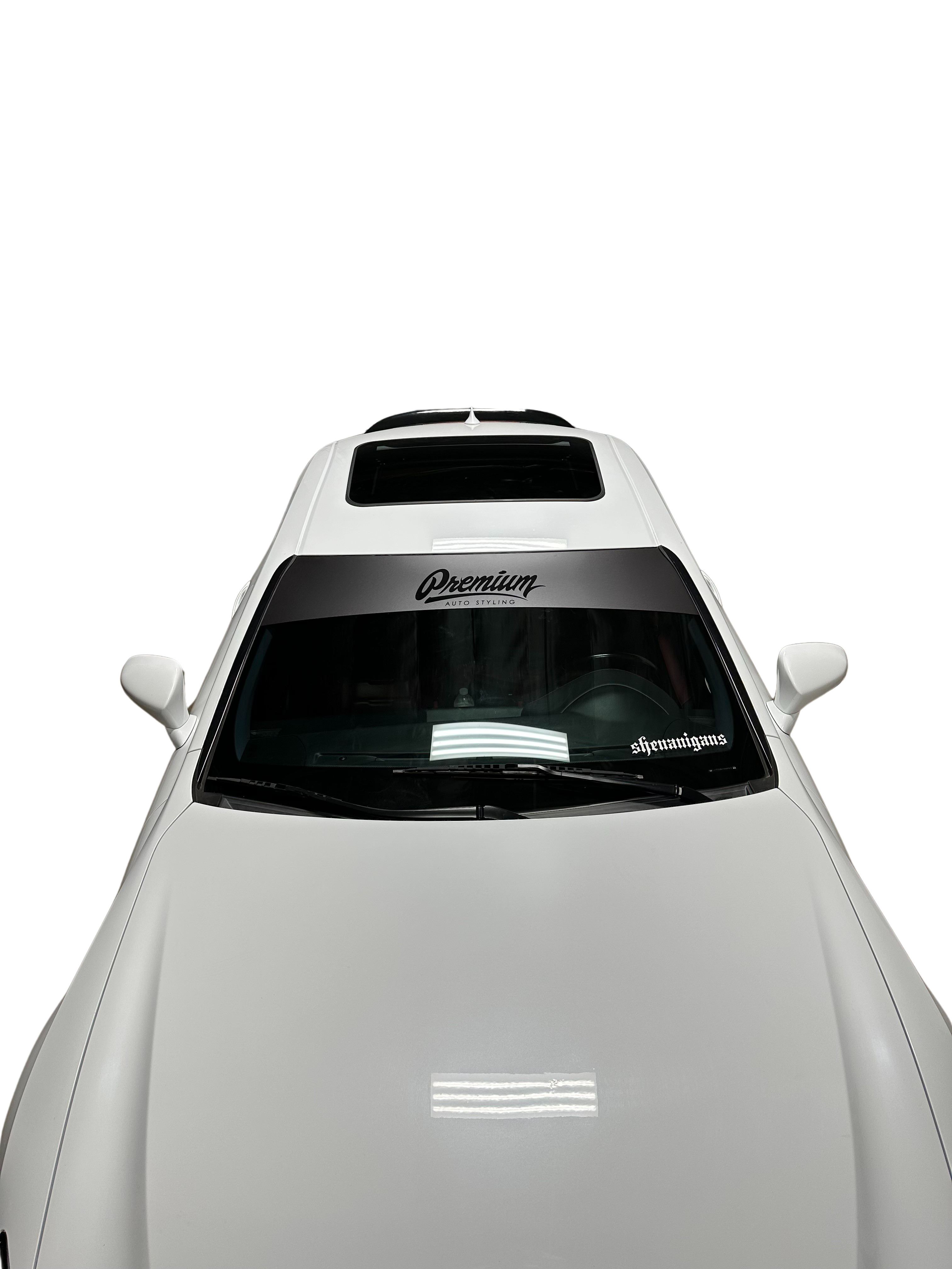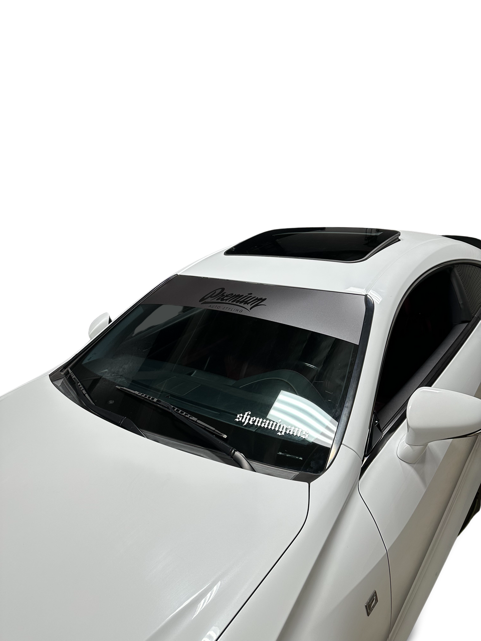 Premium Auto Styling Windshield Banner | Satin Dark Gray Base with Gloss Black OG Premium Logo