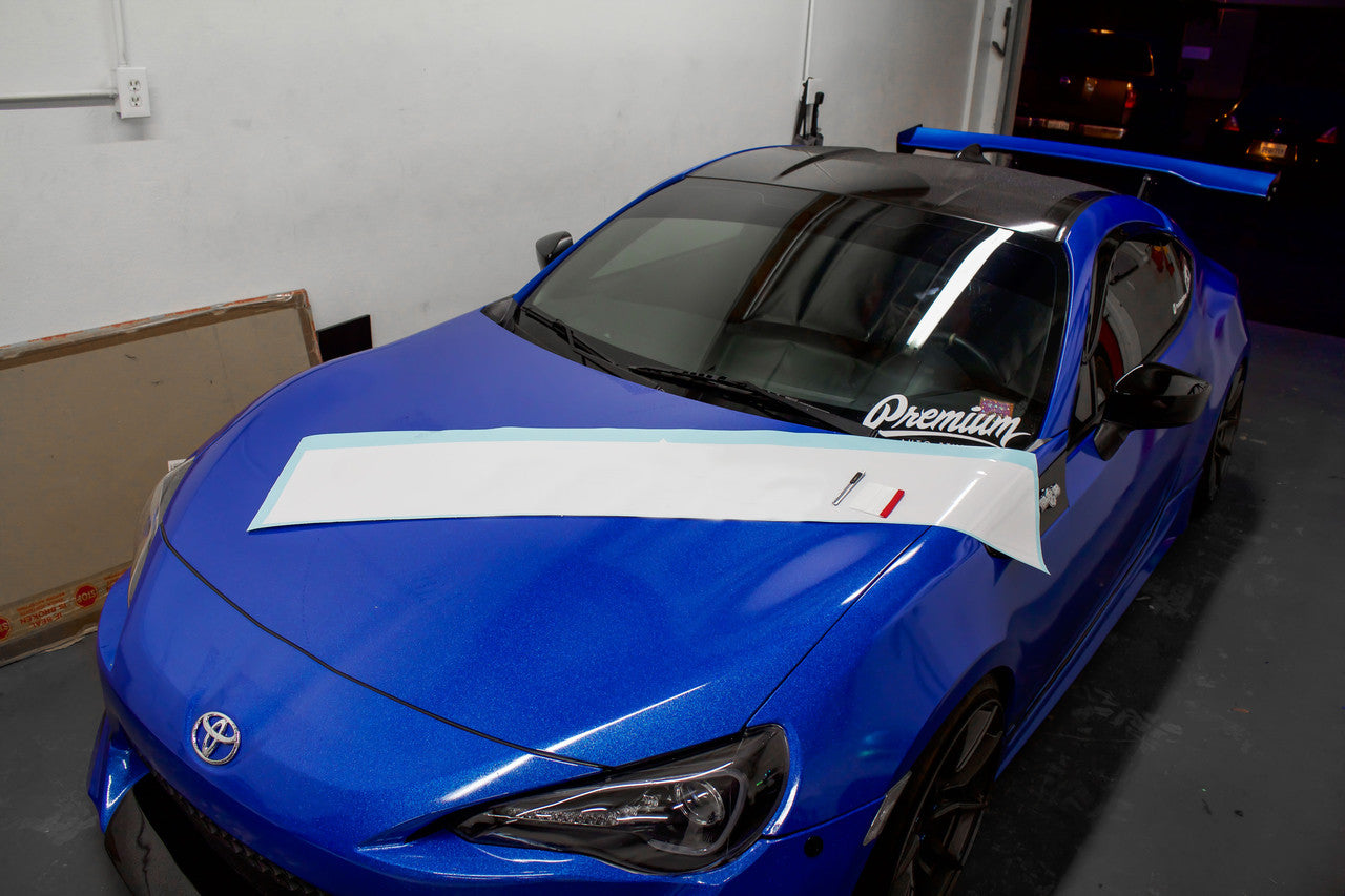 Banner is straight & not pre-cut, made slightly oversize to apply on different car models, simple trimming is needed