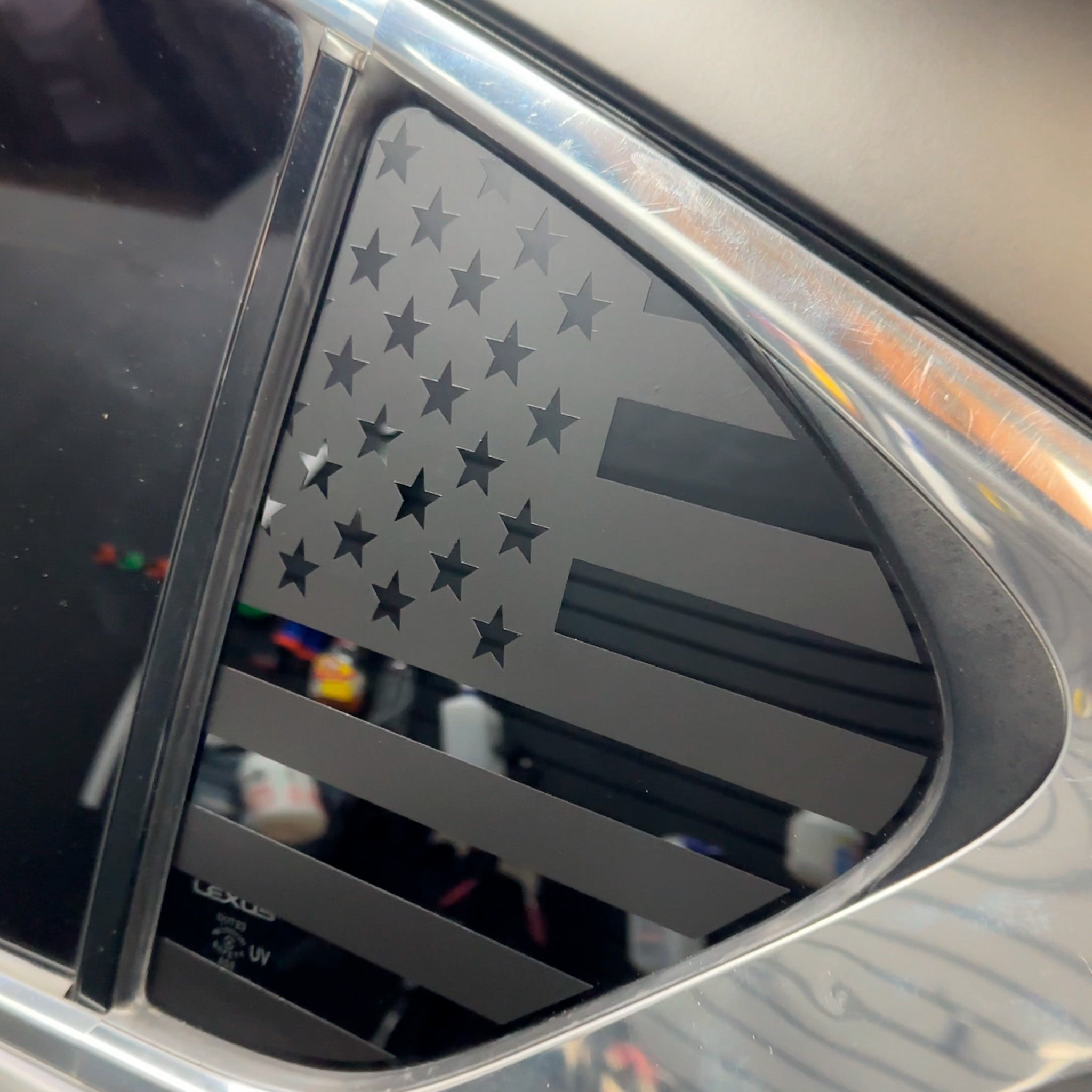 The 2021-2025 Lexus IS US flag quarter window decals from Premium Auto Styling are designed to upgrade the rear profile of your Lexus IS with a clean OEM+ appearance and subtle patriotic detail. Precision-cut specifically for the factory rear quarter window shape, these overlays integrate seamlessly with the sharp body lines of the 2021-2025 Lexus IS.