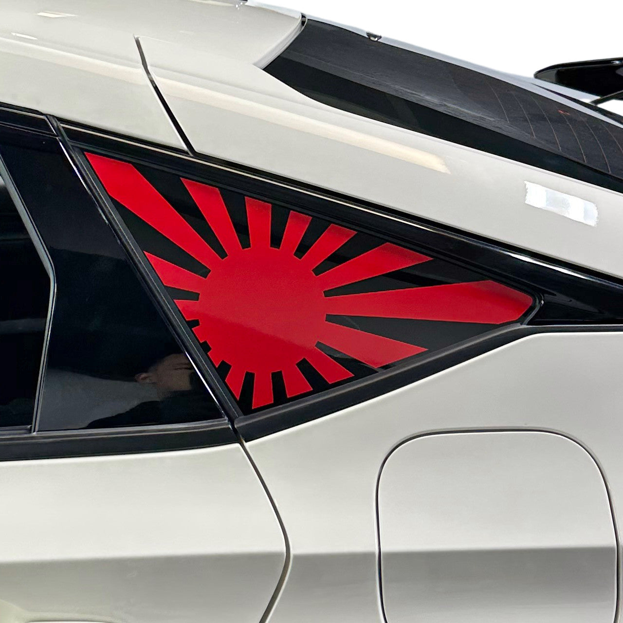 Give your 2023-2024 Honda Civic Hatchback a striking new look with Premium Auto Styling’s Rising Sun Flag Quarter Window Decals. Inspired by Japanese heritage and designed to accentuate the look of your Civic Hatchback, these decals make a bold statement on the road. Custom-cut to perfectly fit the quarter windows, they’re crafted from high-quality, weather-resistant vinyl to withstand daily wear and tear while maintaining a vivid finish.