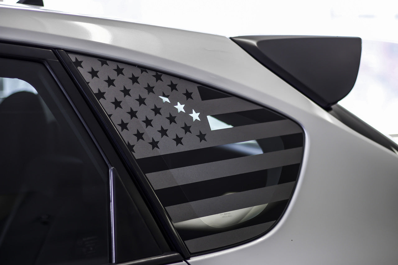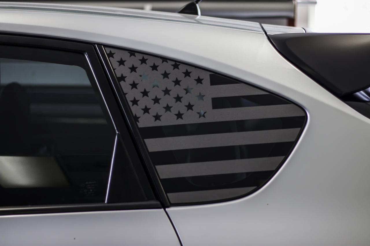 This American Flag Quarter Window Decal set takes your 2008-2014 Subaru WRX/STI Hatchback un-used quarter window and turns it into a great focal point with this patriotically stylish flag decal. It comes in a satin black OR satin grey finish that adds just the right amount of "cool factor" without being too flashy or in-your-face.