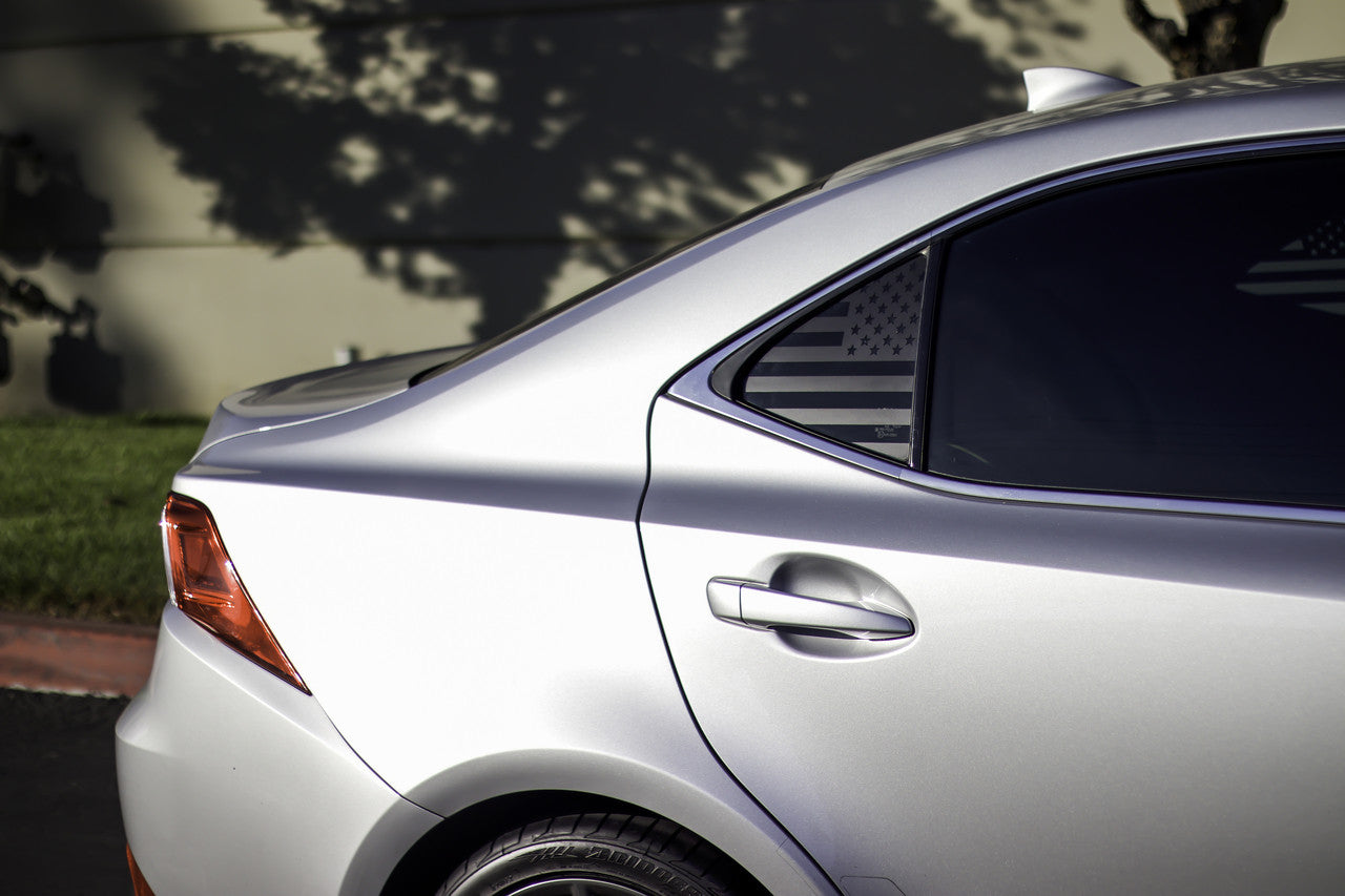 This American Flag Quarter Window Decal set takes your 2014-2018 Lexus IS un-used quarter window and turns it into a great focal point with this patriotically stylish flag decal. It comes in a satin black OR satin grey finish that adds just the right amount of "cool factor" without being too flashy or in-your-face.