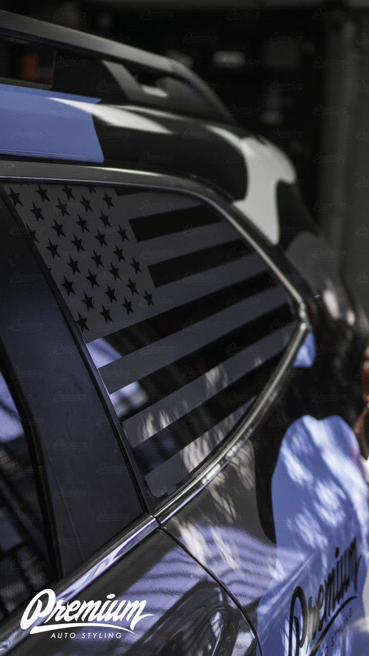 Our American Flag Quarter Window Decal set takes your Ascent's un-used side window and turns it into a great focal point with this patriotically stylish flag decal. It comes in a satin black OR satin grey finish that adds just the right amount of "cool factor" without being too flashy or in-your-face.