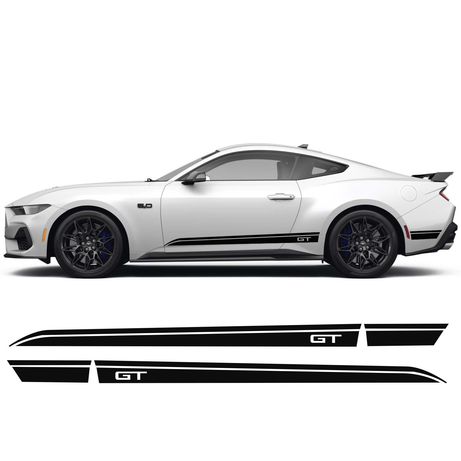 Our rocker panel vinyl graphic stripe kit is tailor-made for the 2024+ Ford Mustang model. The kit includes vinyl stripe sections for both the driver and passenger sides, as depicted.