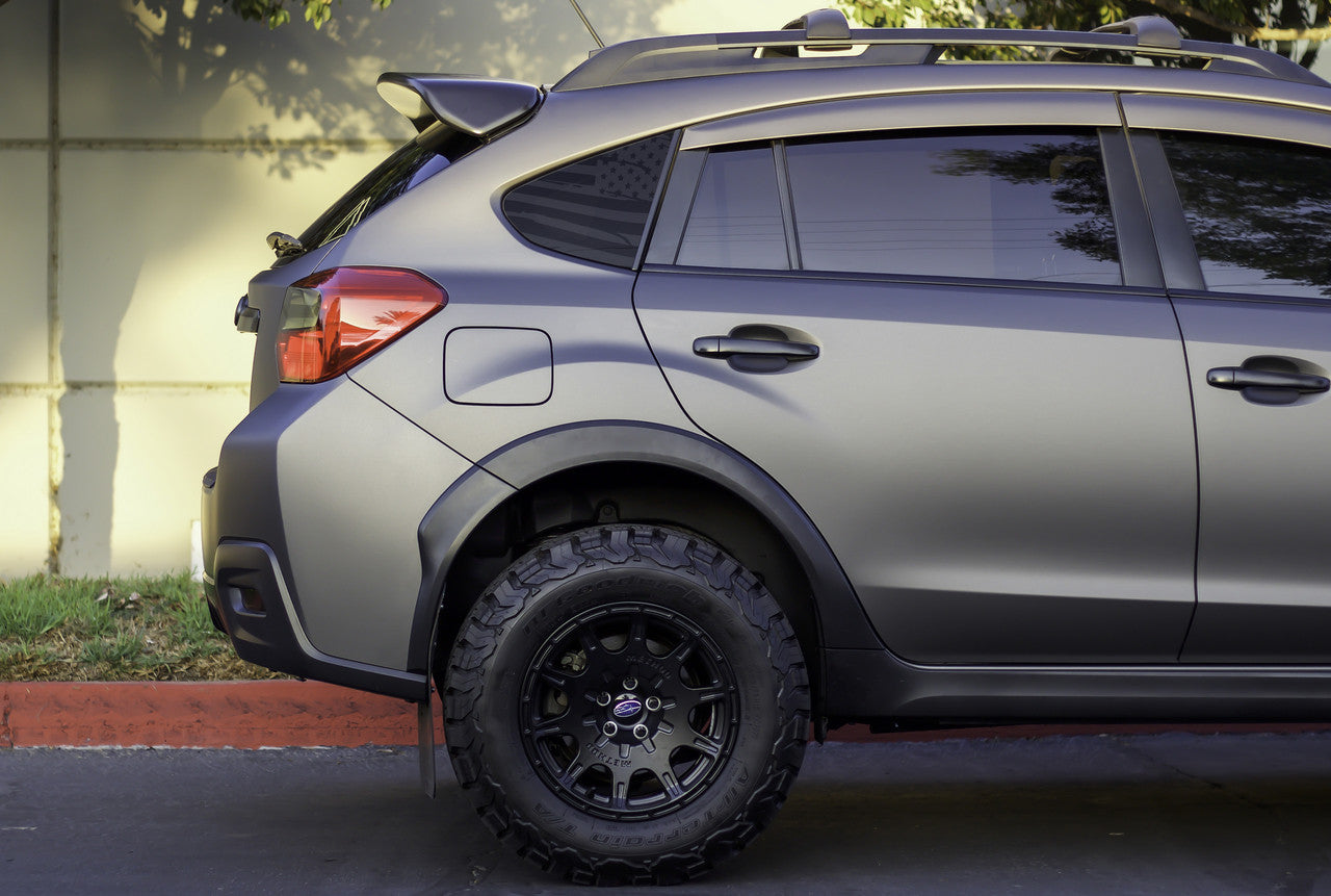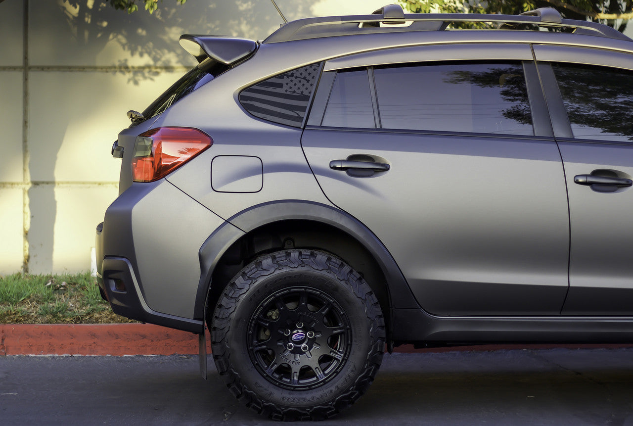 This American Flag Quarter Window Decal set takes your 2012-2015 Subaru XV Crosstrek, 2016-2017 Crosstrek, and 2012-2016 Impreza Hatchback un-used quarter window and turns it into a great focal point with this patriotically stylish flag decal. It comes in a satin black OR satin grey finish that adds just the right amount of "cool factor" without being too flashy or in-your-face.