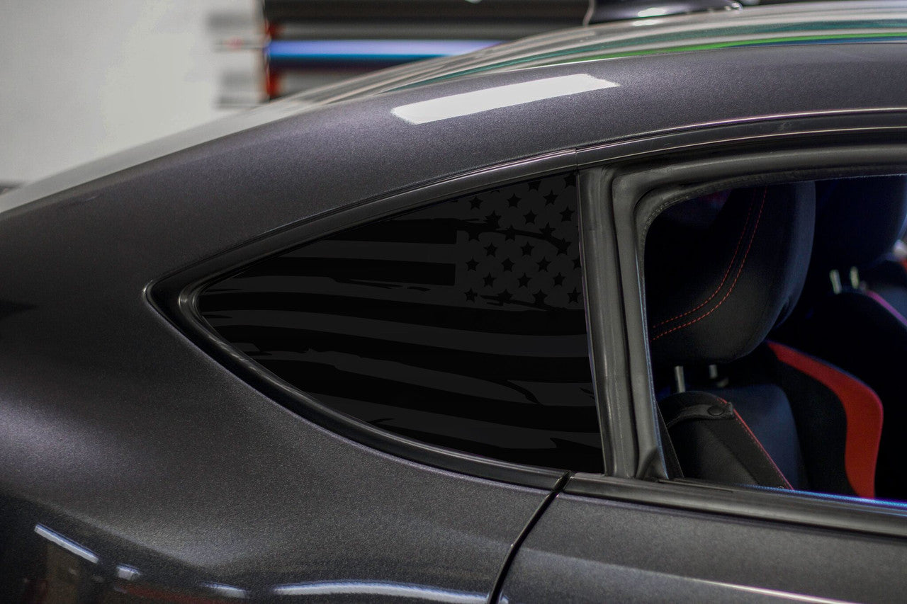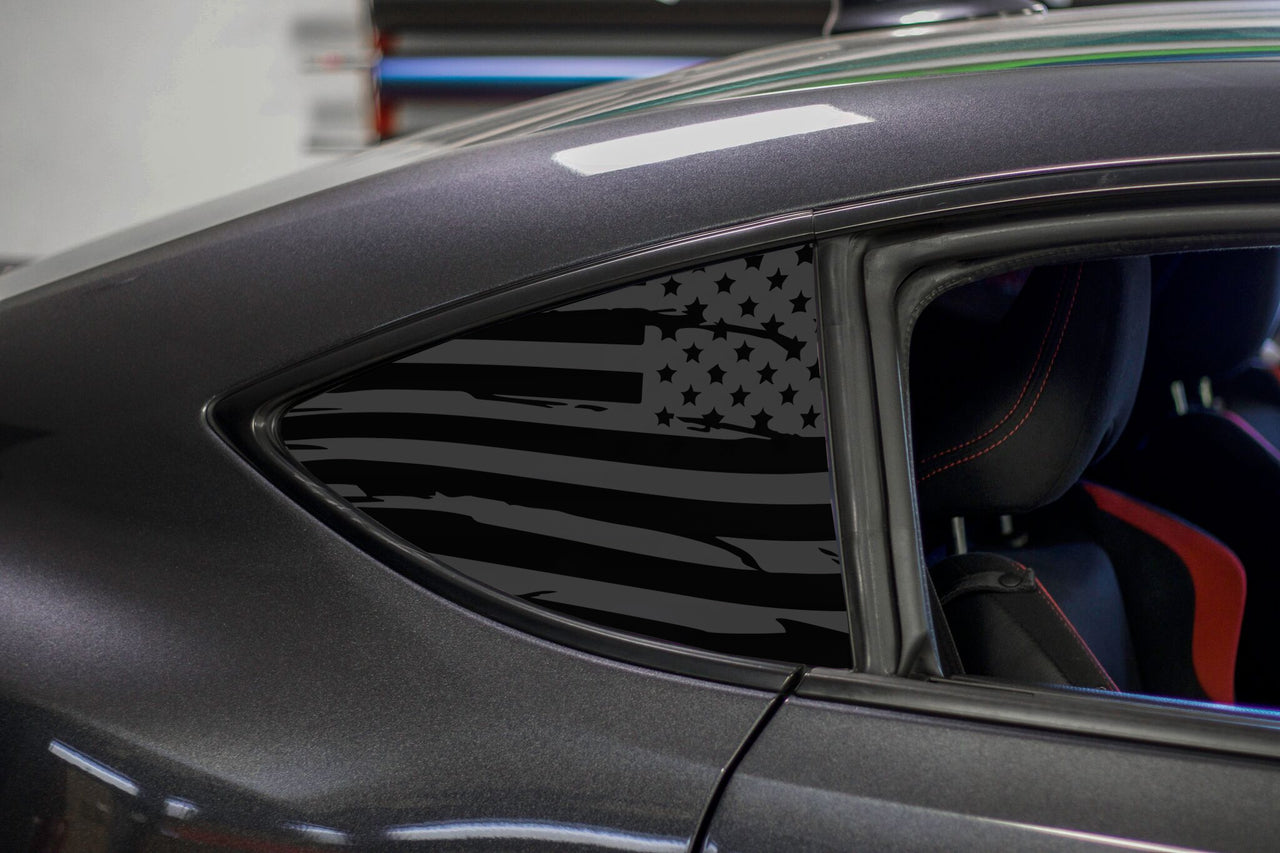 This American Flag Quarter Window Decal set takes your BRZ, FRS, or 86 un-used quarter window and turns it into a great focal point with this patriotically stylish flag decal. It comes in a satin black OR satin grey finish that adds just the right amount of "cool factor" without being too flashy or in-your-face.