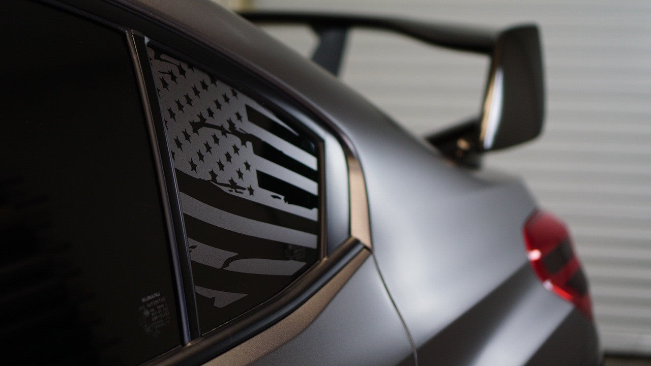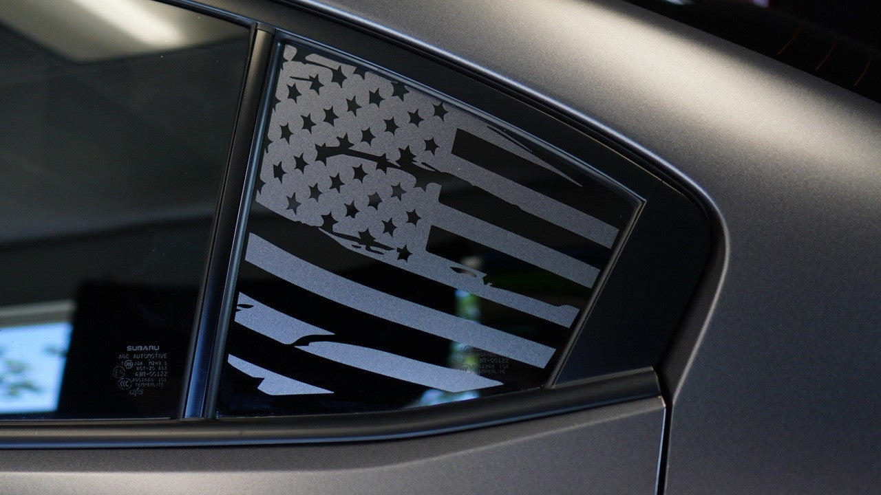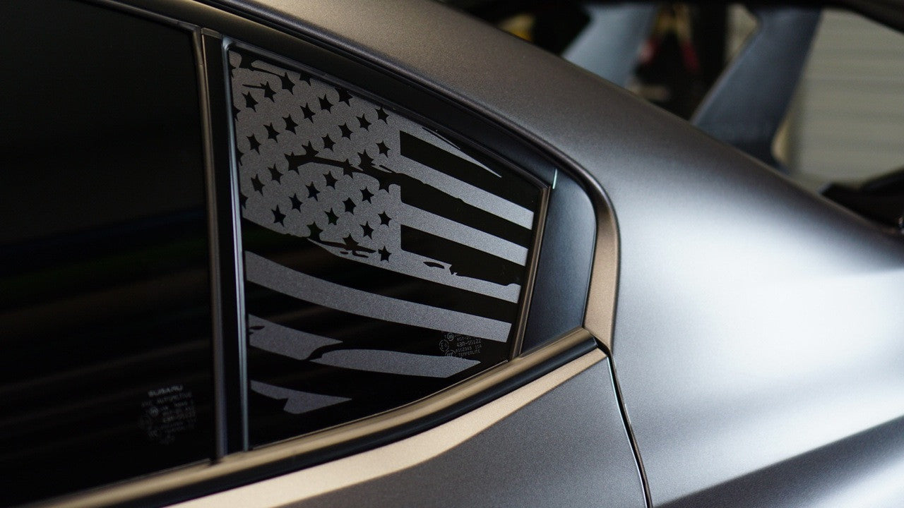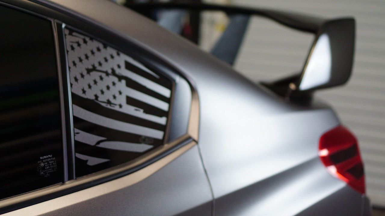 Give your WRX / STI’s unused quarter windows a clean, patriotic accent. This subtle satin-finish flag adds attitude without shouting.