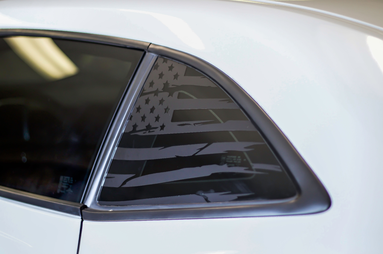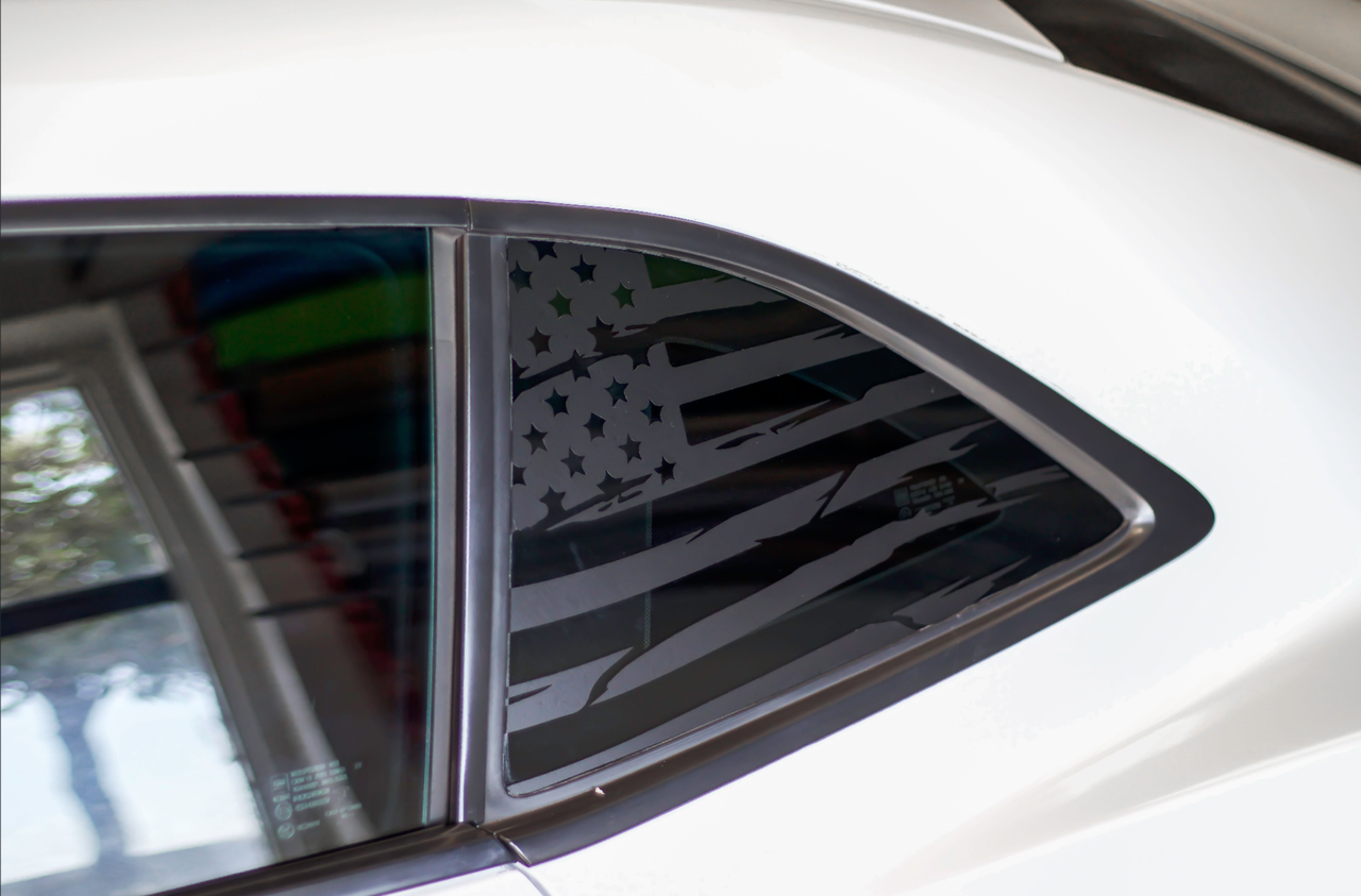 Our American Flag Quarter Window Decal set takes your Camaro's un-used side window and turns it into a great focal point with this patriotically stylish flag decal. It comes in a satin black OR satin grey finish that adds just the right amount of "cool factor" without being too flashy or in-your-face.