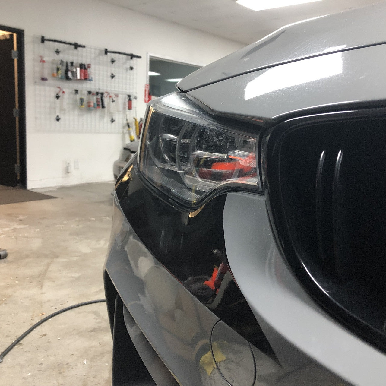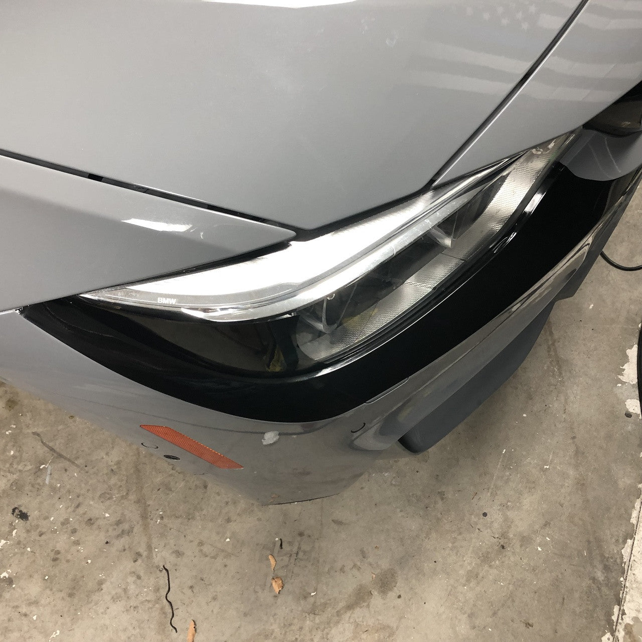 The F1 Style Accent Inlay is simply a piece we've created to make your M3 stand out from the rest. It is simple to install and only requires one set of hands and a squeegee. Before taking the vinyl off it's backing paper, you'll want to make sure the surface you're applying the vinyl to is clean and cool to the touch. Applying on a hot surface will warp the vinyl and through off the pre cut lines. Once the surface is clean and free of debris, position this vinyl inlay by first lining up the corner closest to the center of the bumper. The top of the inlay, the edge closest to the headlight has excess vinyl. This vinyl is there to be tucked along the edge with a little heat and a squeegee. When the corner has been positioned you can then work your way along the bottom edge making sure the vinyl lines up with the body line. Depending on how you position the corner originally it may through off where the rest of the line falls so do not be afraid to pick the vinyl back up and reposition it again. Try not to pull the vinyl out of shape with pulling it back up as this will definitely make it far more difficult to reposition the inlay correctly. Use a squeegee to apply the vinyl to the surface and set it into place. Heat and tuck the excess vinyl around the edge and trim any excess left over.