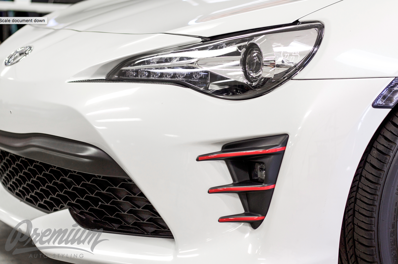 Accentuate the clean sculpted styling of your 2017+ GT86 front end with Premium Auto Styling's red pinstripe kit. These precut decals apply to the factory foglight bezel for an impressive custom show car appearance.