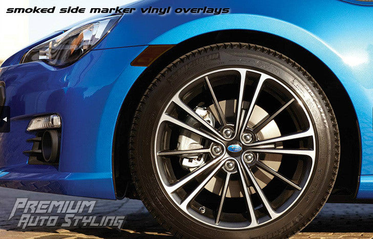 2013-2016 Scion FR-S Tinted side marker overlays are made from thick, strong, flexible 3 Mil vinyl film which can be applied to compound, convex surfaces. These pre-cut, smoked overlays add a great custom look to your stock Subaru BRZ side markers. Computer cut for precise fitment!