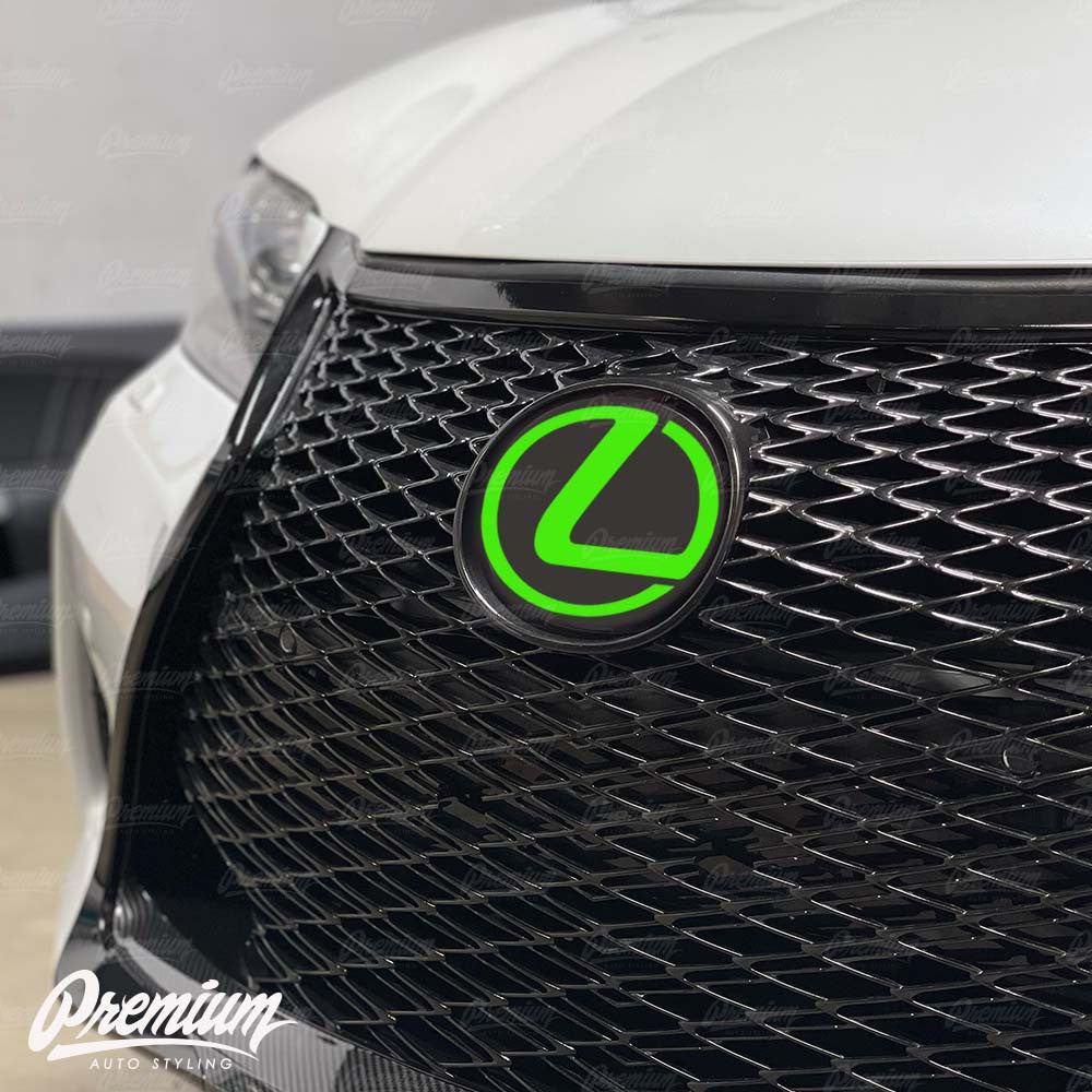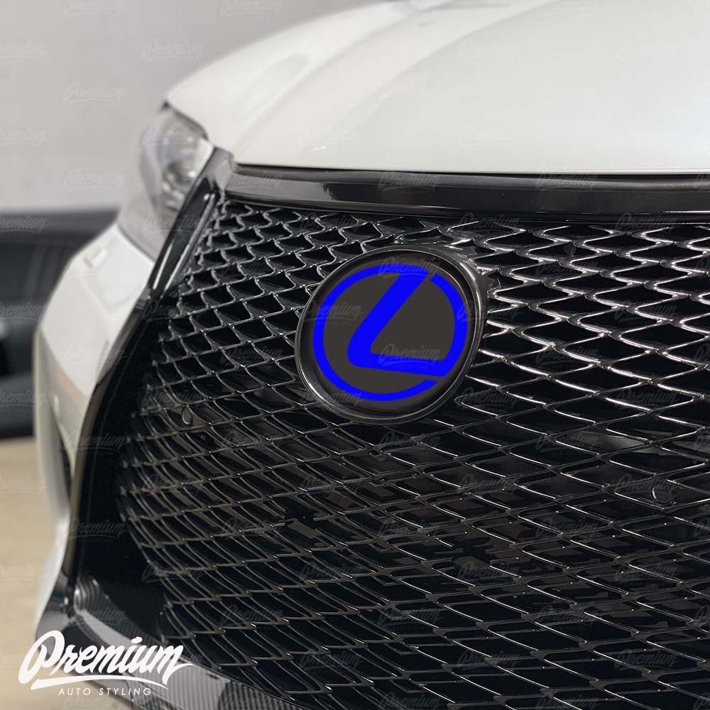 LEXUS has a great looking front end as is, but what if you could make it better. While making it your own. This is our Stealth emblem overlay, if you're looking for an easy way to change the look of your emblems without all the hassle of taking off the badge itself. These unique Vinyl overlays have been pre-cut for easy DIY installation and are made with quality automotive grade vinyl, not your typical calendar film found in most decal stickers. These overlays have air release technology that allow for easy install. This is the same material we use to wrap entire vehicles. It is a two layer decal. Simple Peel and Stick Process saves you time and money. Unlike most ebay or amazon vendors, Premium Auto Styling vinyl overlays are designed and produced here in the USA in our own facility. We design and test fit all products to ensure fitment guaranteeing you the best results . Basically, if they don’t work on our cars, they’re not going to end up on yours. If you are looking for an inexpensive styling modification, or you just want to change up the factory look, it's a great idea to checkout this vinyl overlay.