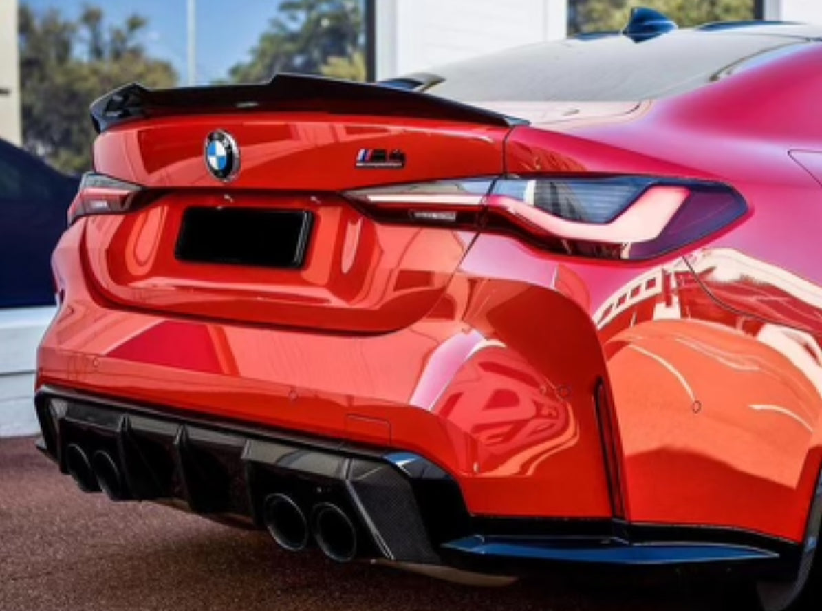 The G82 M4 High Kick Trunk Spoiler is an aftermarket aerodynamic modification designed specifically for the BMW G82 M4 coupe. This spoiler, as the name suggests, features an elevated "high kick" design, which adds a more aggressive and sporty look to the rear end of the vehicle.