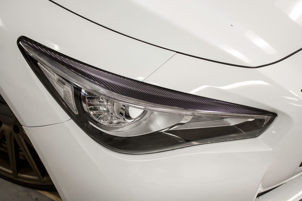 2014 - 2019 Infiniti Q50 - Premium Auto Styling bringing you yet another inexpensive way to customize your Q50, thanks to our headlight eyelid overlays, Premium Auto Styling's overlays are available in three different colors for your 2014 - 2018 Q50. Our overlays are constructed from high quality premium cast vinyl and is designed to last several years. As always with all Premium vinyls they are designed and produced right here in house and then tested out on our very own cars first to ensure a perfect fit every time. So if you are looking for an inexpensive styling mod, or you just want to change up the factory look ,it's a great idea to checkout our eyelid vinyl overlays.
