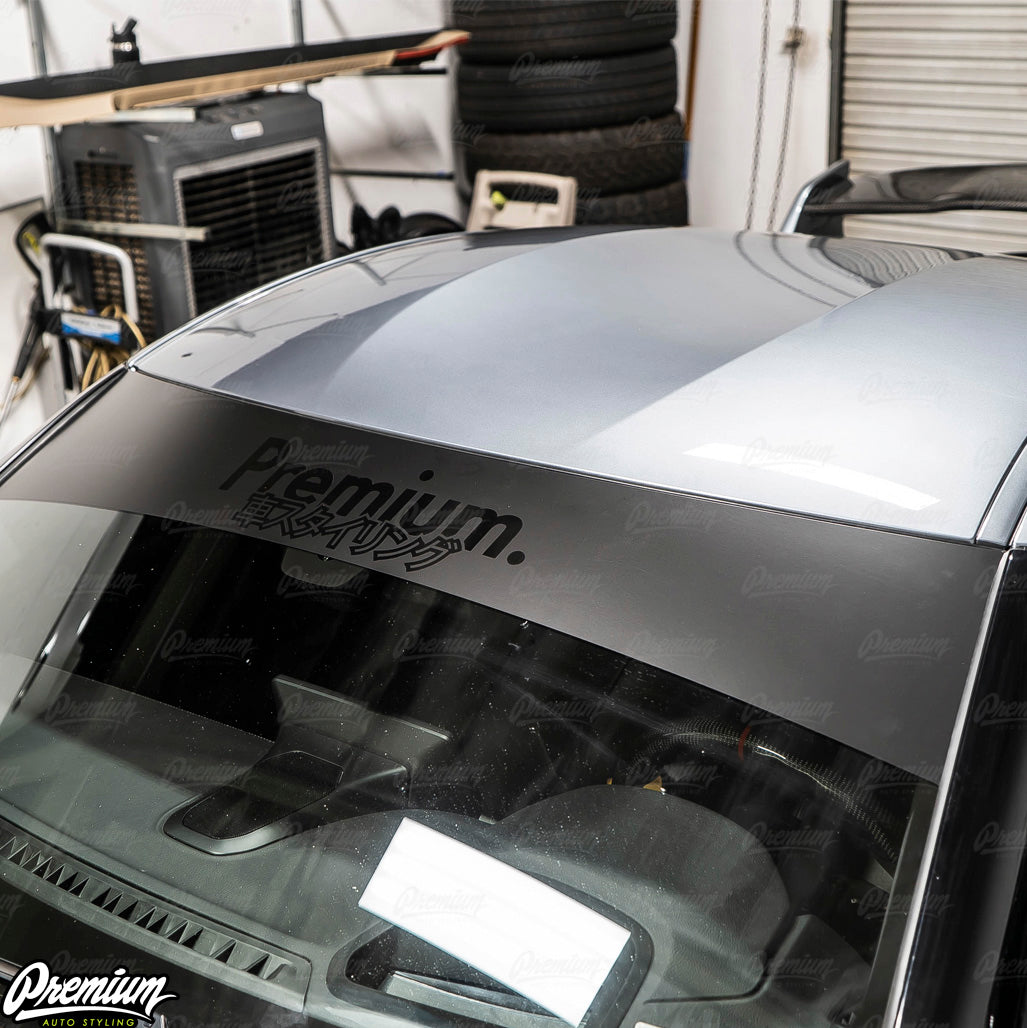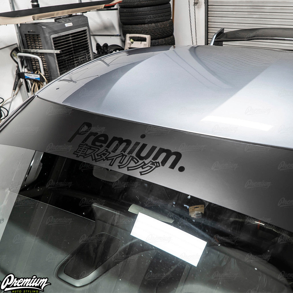 Premium Japanese Script Logo Window Banner | Satin Black w/ Gloss Black Logo - Stealth