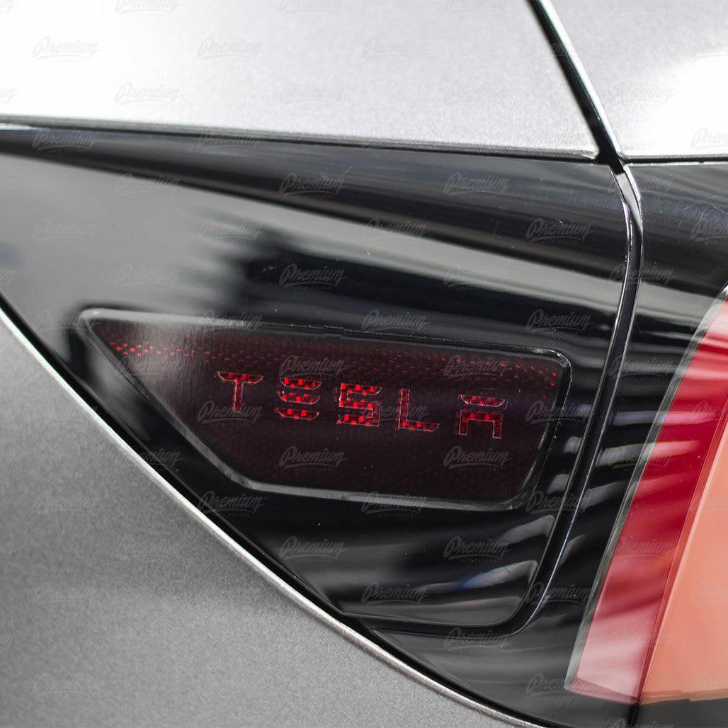 Rear Side Reflectors with "TESLA" text Cut-Out - Smoke Tint | 2017+ Tesla Model 3