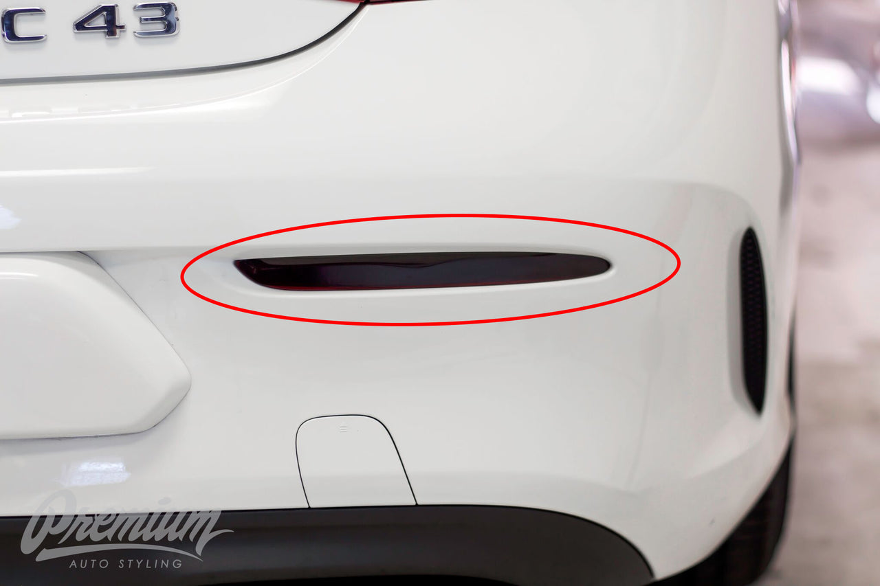 2015-2018 C-CLASS BUMPER REFLECTOR OVERLAYS - Premium Auto Styling smoked tint for your rear bumper reflectors add great styling for a low price! The overlays are precision cut from a durable dark smoked vinyl for a perfect fit and aggressive styling that’s sure to look good on any color Mercedes! Made from quality smoked tint vinyl. application takes roughly 20 minutes to complete the entire project.