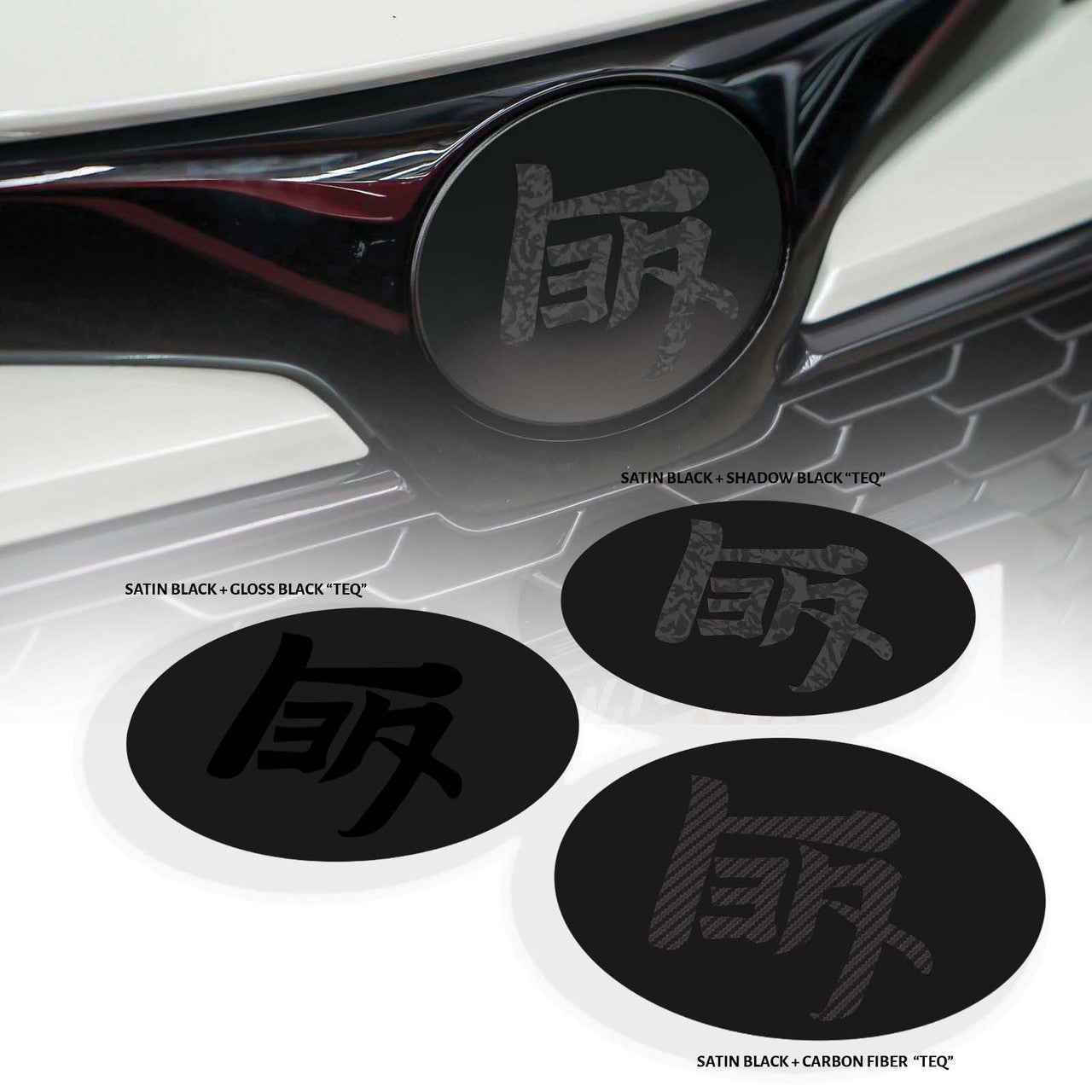 Introducing Premium's Fromt Emblem Badge Vinyl Overlay for the 2019-2024 Toyota Corolla and GR Corolla. This sleek and stylish pre-cut overlay is designed to enhance the appearance of your vehicle's emblem badge with a stealth "TEQ" logo. Made from high-quality vinyl, this overlay is precision-cut to fit perfectly over the existing badge, giving it a custom, personalized look.
