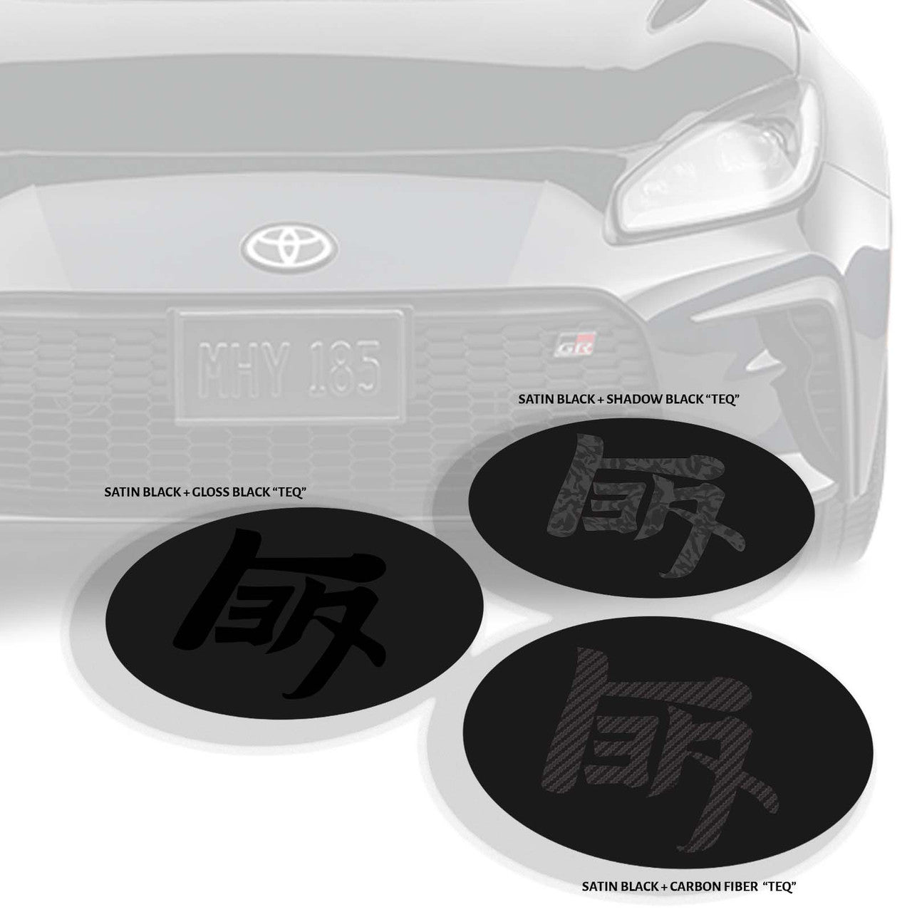 Introducing Premium's Front Emblem Badge Vinyl Overlays for the 2022-2025 Toyota GR86. This sleek and stylish pre-cut overlay is designed to enhance the appearance of your vehicle's emblem badges with a stealth "TEQ" logo. Made from high-quality vinyl, this overlay is precision-cut to fit perfectly over the existing badge, giving it a custom, personalized look. INCLUDES FRONT & REAR