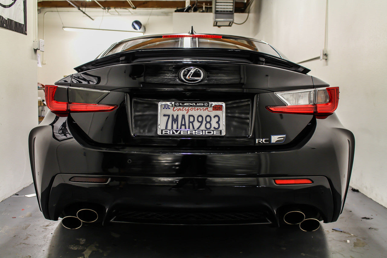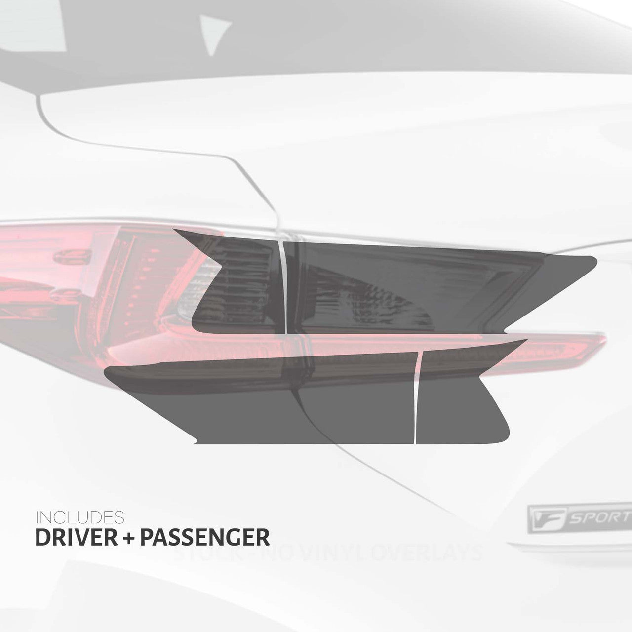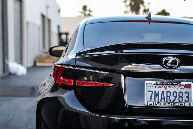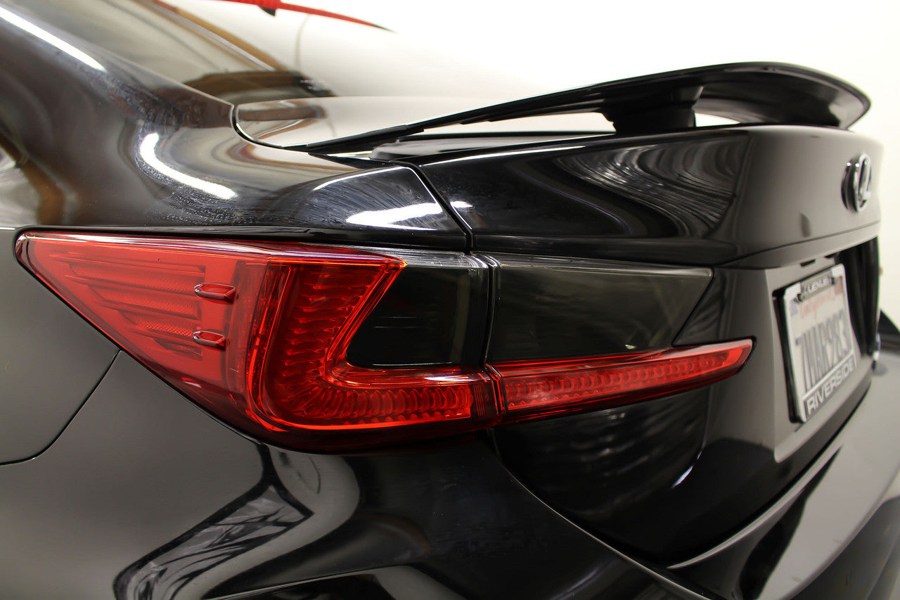 Lexus RC & RC-F Smoked Tail Light Inserts - Premium Auto Styling smoked Reverse / Blinker tint overlays for your taillights add great styling for a low price! The overlays are precision cut from a durable dark smoked vinyl for a perfect fit and aggressive styling that’s sure to look good on any color Lexus RC! Made from quality smoked tint vinyl. Because these overlays only cover the reverse & blinker area installation is super easy! Application takes roughly 15 minutes to complete the entire project. Note: This overlay only covers the clear portion of the tail light to make it easy for DIY installers.