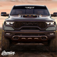 Stylize your vehicle with our "TRX" Logo Windshield Banner in the following colorway: Satin Black Banner Base with Gloss White Logo. This Windshield banner is installed on top of the glass and goes across the top of your windshield similar to a tint strip. -Note this windshield banner may block some of the factory sensors in the top portion of the windshield and cause error messages on the dash.
